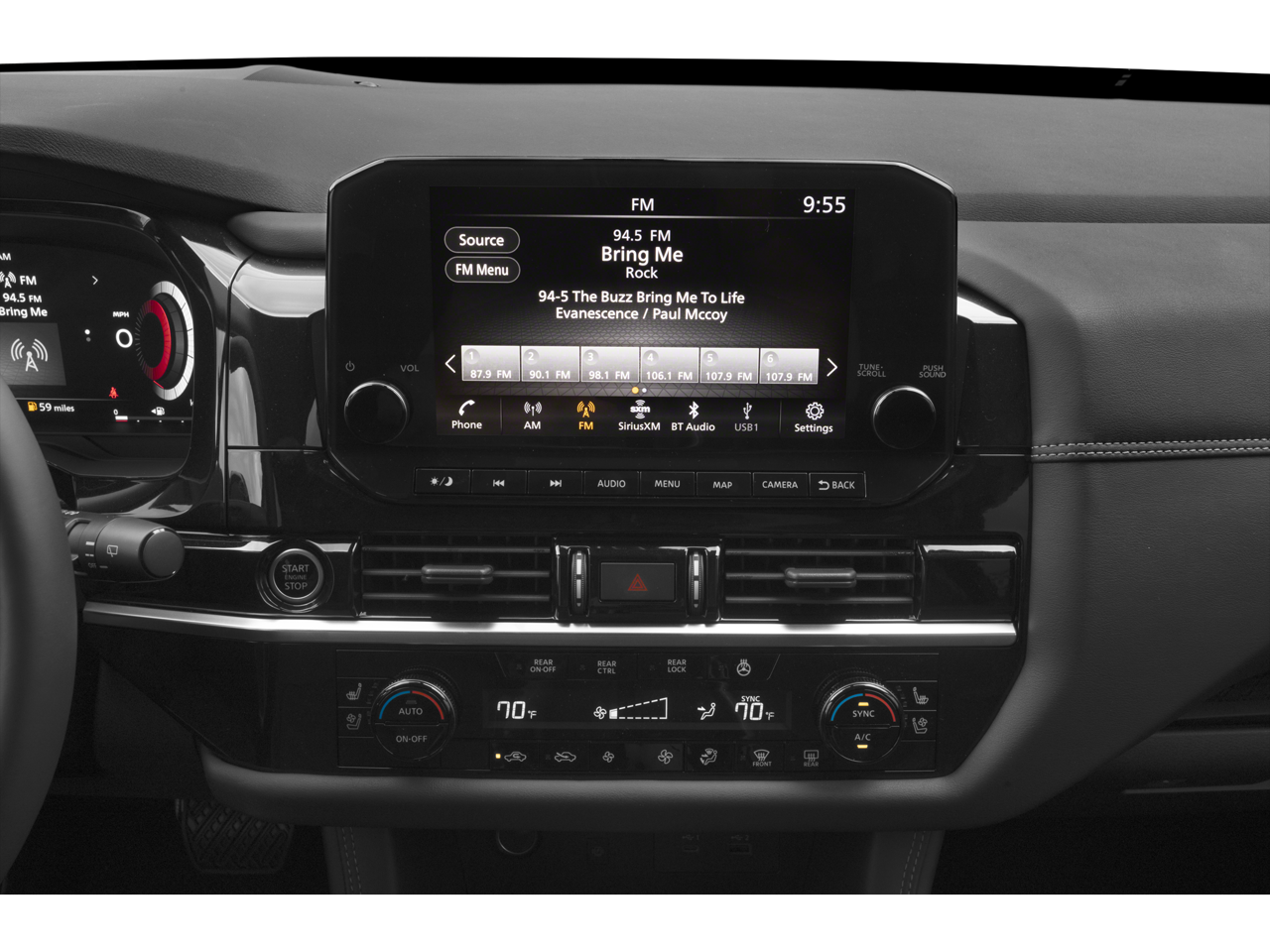- Radio: AM/FM Audio System -inc: Radio Data System (RDS), wireless Apple CarPlay, Android Auto, 9" color display w/multi-touch control, SiriusXM Satellite Radio w/advanced audio features, 2 illuminated front USB connection ports (1 type A, 1 type C) for iPod interface and other compatible devices, Bluetooth® hands-free phone system and streaming audio, Speed-Sensitive Volume control (SSV), hands-free text messaging assistant and Siri Eyes-Free/Google Assistant voice recognition